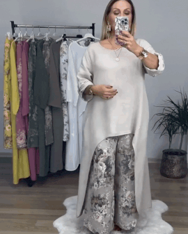 Wenn Sie sich in Ihrem Outfit wohlfühlen, spüren das auch andere – und genau das strahlt dieses Set aus: natürliche Eleganz mit selbstbewusstem Ausdruck.